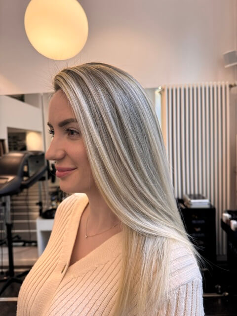 Egal ob natürlechi Blondtön, Balayage oder anspruchsvoli Farbkorrekture – er sorgt mit viel Gfühl und modernste Technik für gsunds, strahlends Blond uf höchstem Niveau.